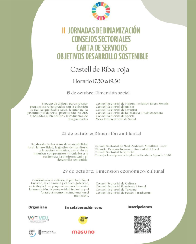 Dimecres que ve 22 d'octubre segon Taller de les II Jornades de Dinamització de Consells Sectorials, Carta de Servicis i ODS, un espai obert a la ciutadania, associacions i entitats locals.