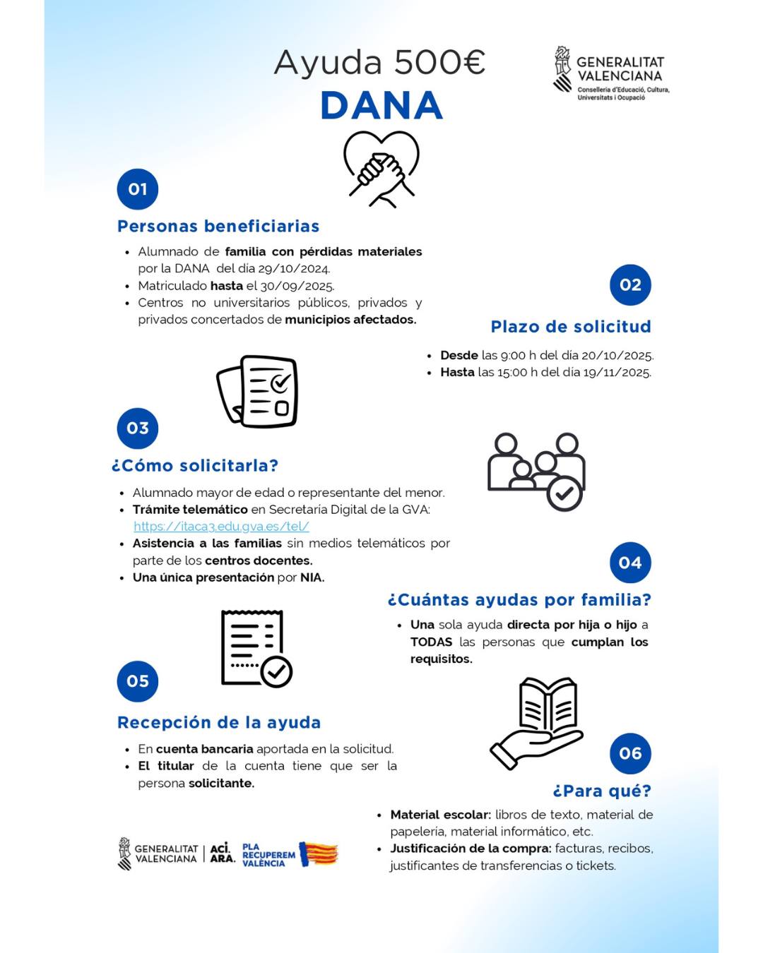 Convocatòria directa d’ajudes destinades a l’adquisició de material escolar per a l’alumnat matriculat en centres educatius dels municipis de la Comunitat Valenciana afectats per la DANA del 29 d’octubre de 2024.