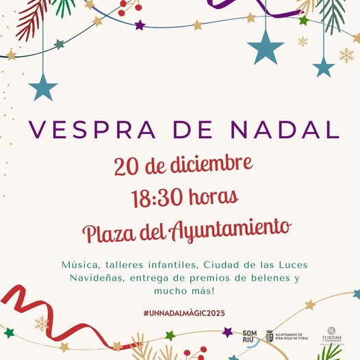 El sábado 20 de diciembre, a partir de las 18:30 h, ven a la Plaza del Ayuntamiento para vivir una tarde llena de magia en la Vespra de Nadal.