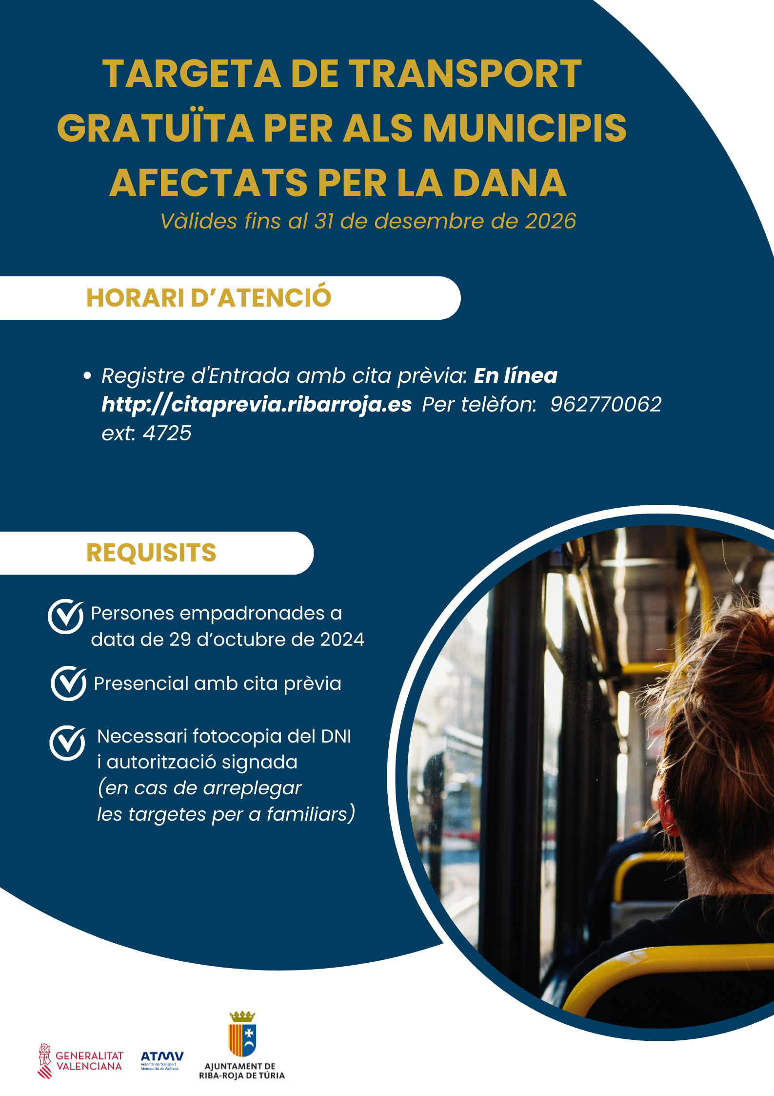Horari d'atenció per obtindre la Targeta de transport gratuïta de la Generalitat Valenciana
