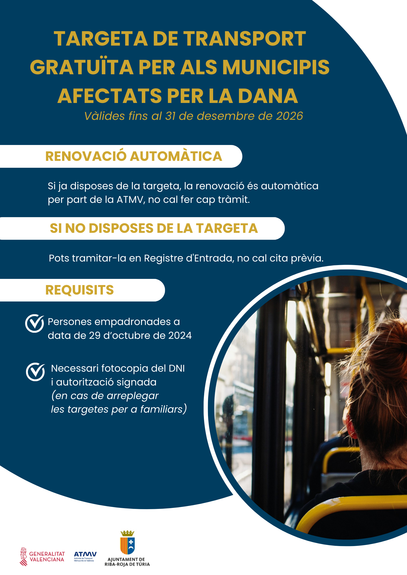 Si ja disposes de la targeta, la renovació és automàtica per part de la ATMV de la Generalitat Valenciana, no cal fer cap tràmit.