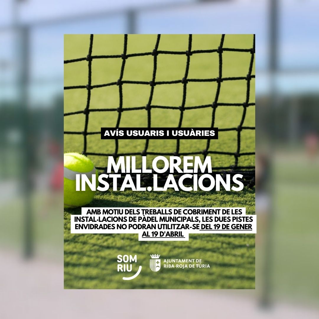Amb motiu dels treballs de cobriment de les instal·lacions de pàdel municipals, les dues pistes envidrades no podran utilitzar-se del 19 de gener al 19 d'abril.