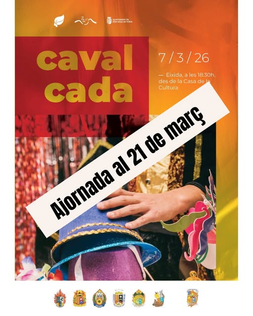 Davant la inestabilitat meteorològica prevista per a aquest dissabte 7 de març i després de l'acord dels presidents de les sis comissions falleres de Riba-roja de Túria, la Cavalcada del Ninot se SUSPÉN i queda AJORNADA al 21 de març, a la mateixa hora i idèntic recorregut que el previst.