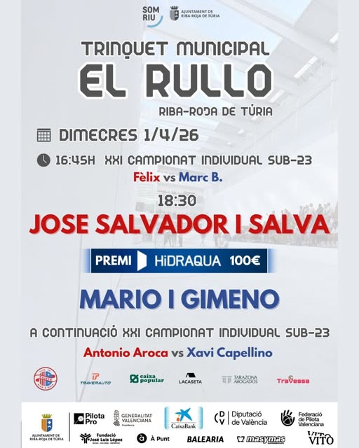 01/04/2026 10:15Partida de pilota valenciana