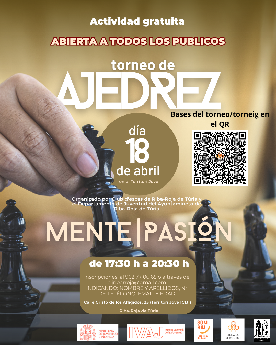 Torneig organitzat per l'Àrea de joventut i el Club d'Escacs de Riba-roja de Túria.