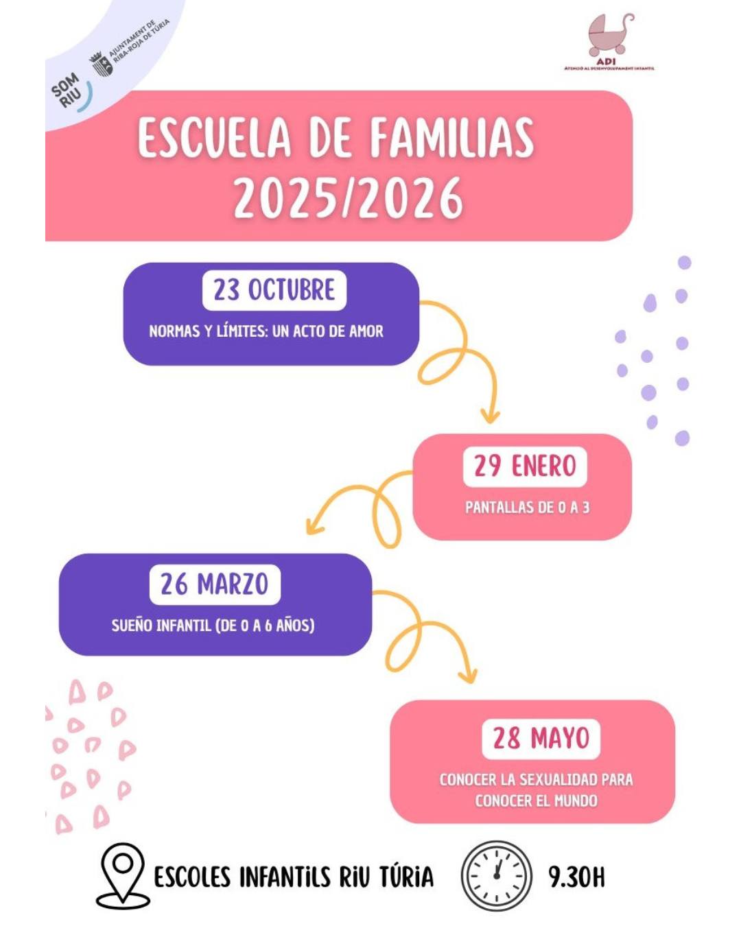 La Escuela de Familias 2025/2026, organizada por el Servicio ADI (Atención al Desarrollo Infantil), comienza con temas imprescindibles para acompañarte en la crianza y educación de tus peques.