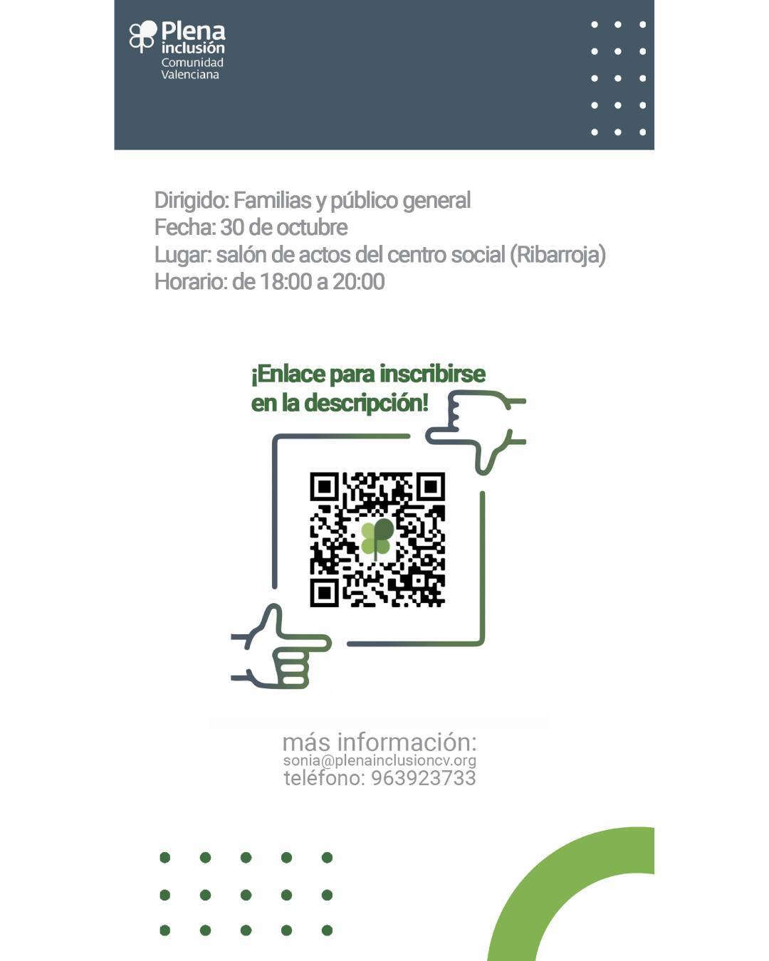 L’associació Plena inclusió —moviment que treballa a Espanya pels drets de les persones amb discapacitat intel·lectual i del desenvolupament i les seues famílies— impartirà una xarrada informativa el pròxim 30 d’octubre.