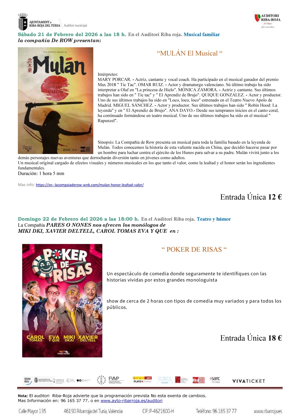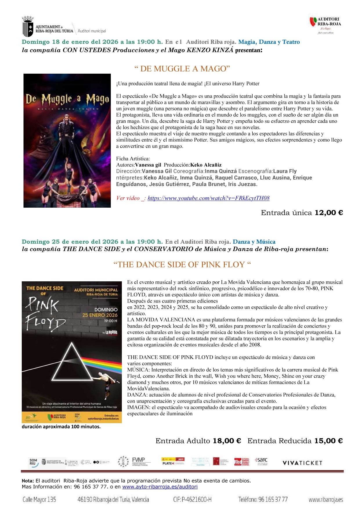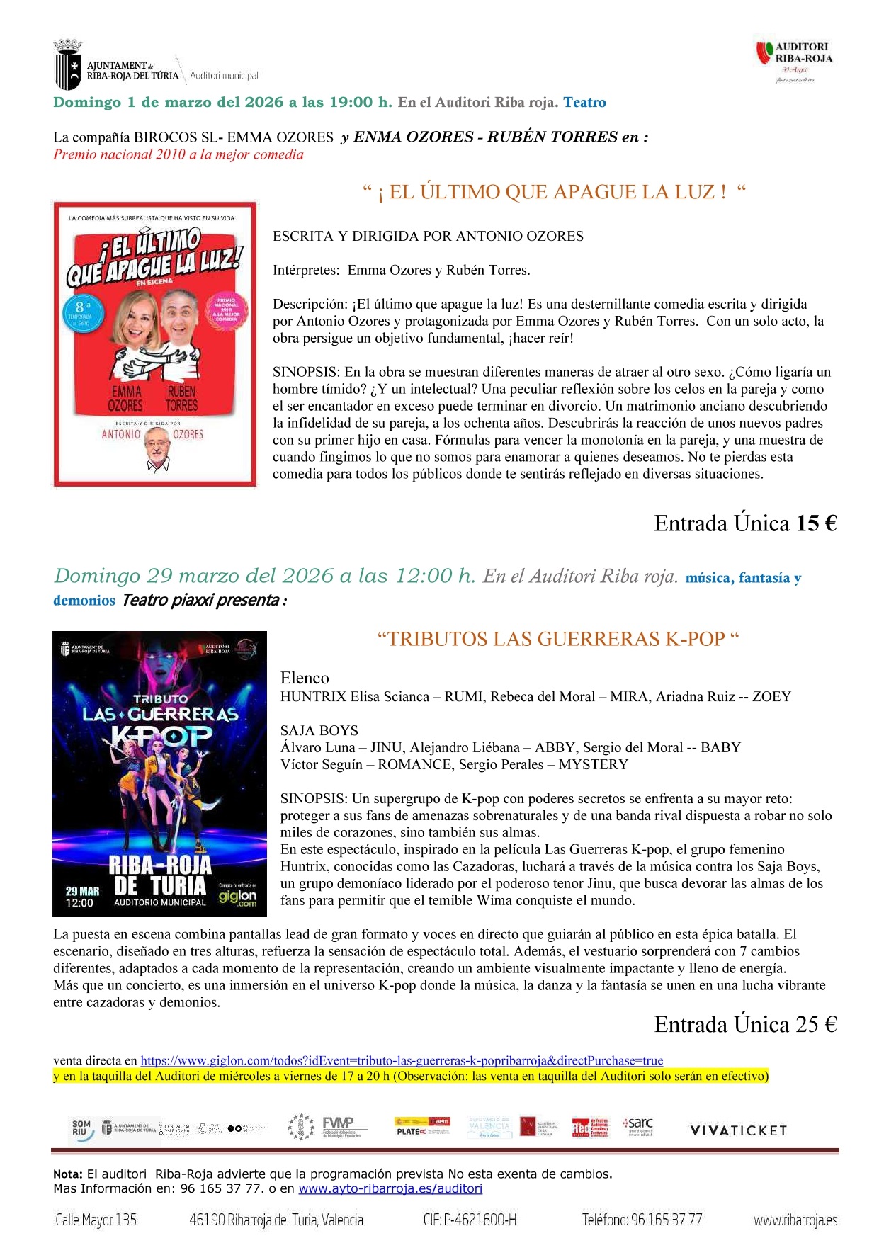 Eventos de artes escénicas previstas para los primeros meses de 2026: