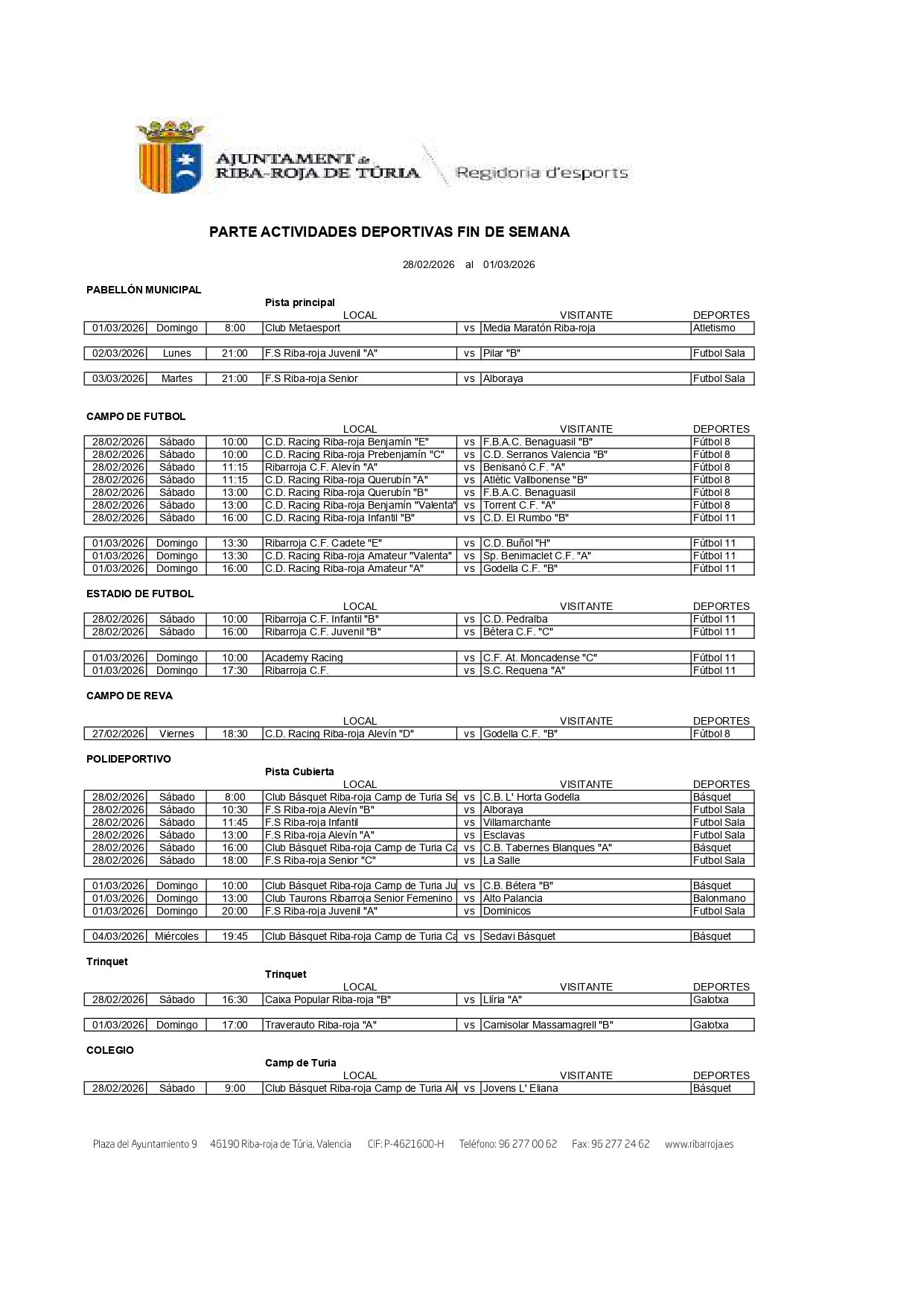 Part d'activitats 28 de febrer al 4 de març de 2026: