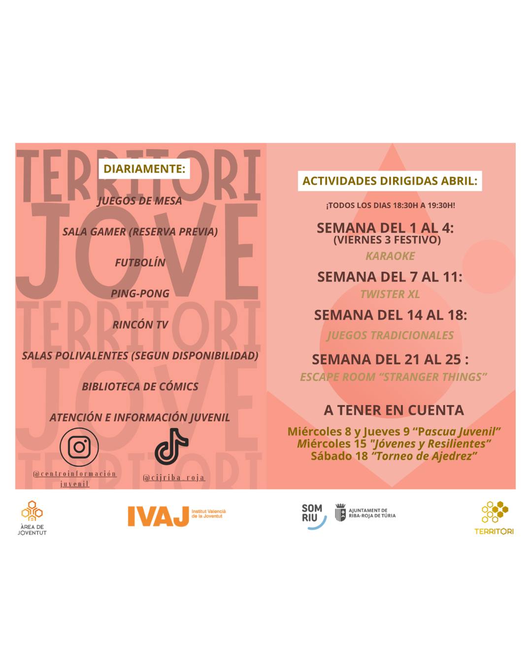 Programació d'abril en Territori Jove..