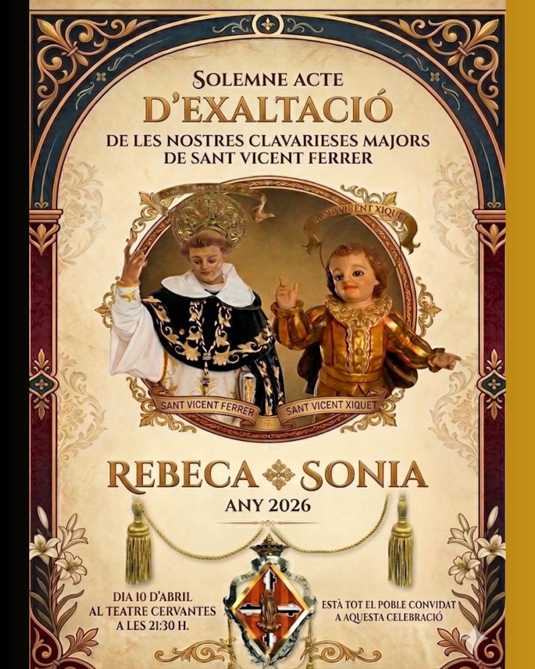Exaltació de Rebeca Ferrandis i Peris com a Clavariesa Major i Sonia Peris i Duro com a Clavariessa Major Infantil.